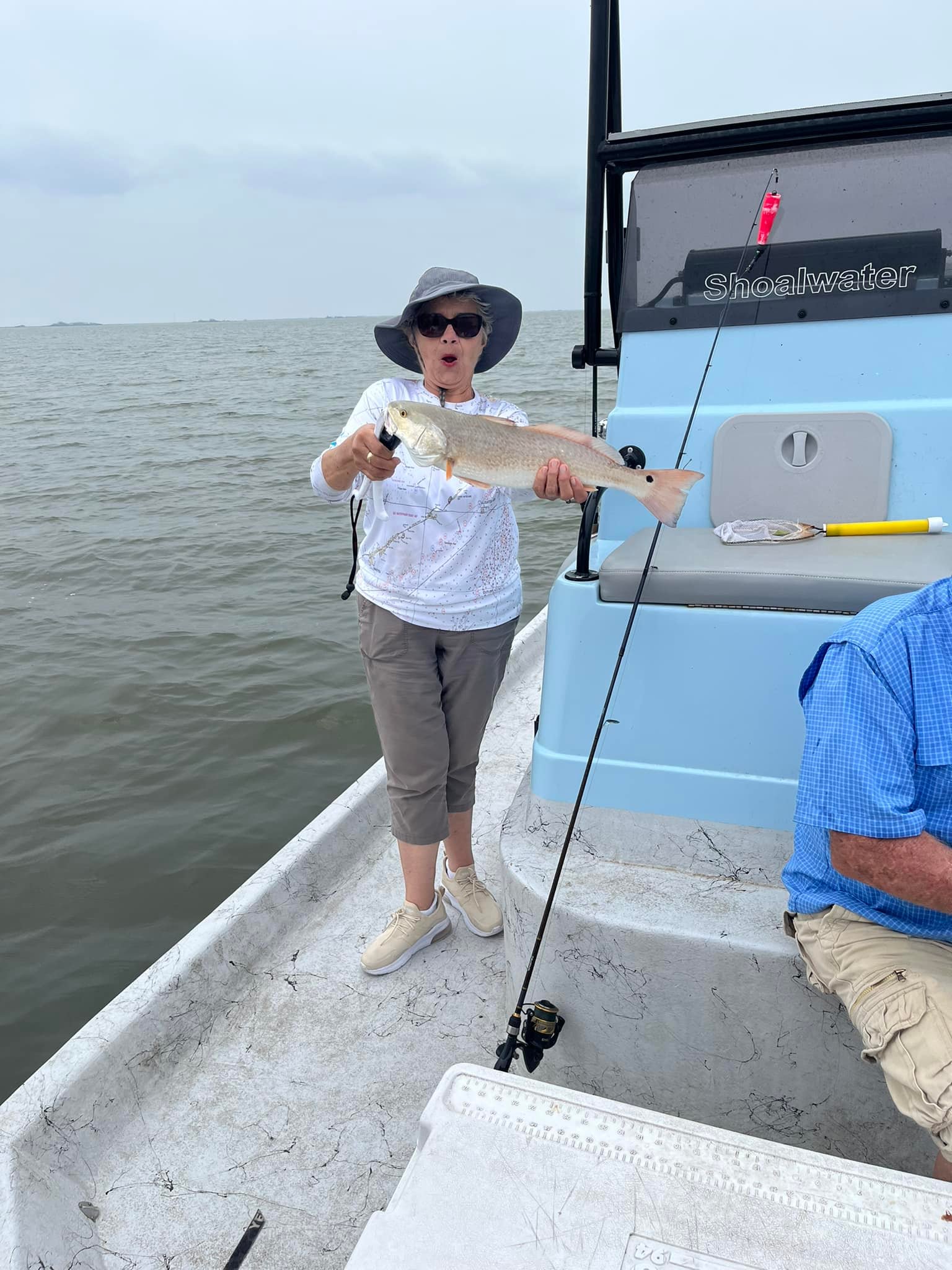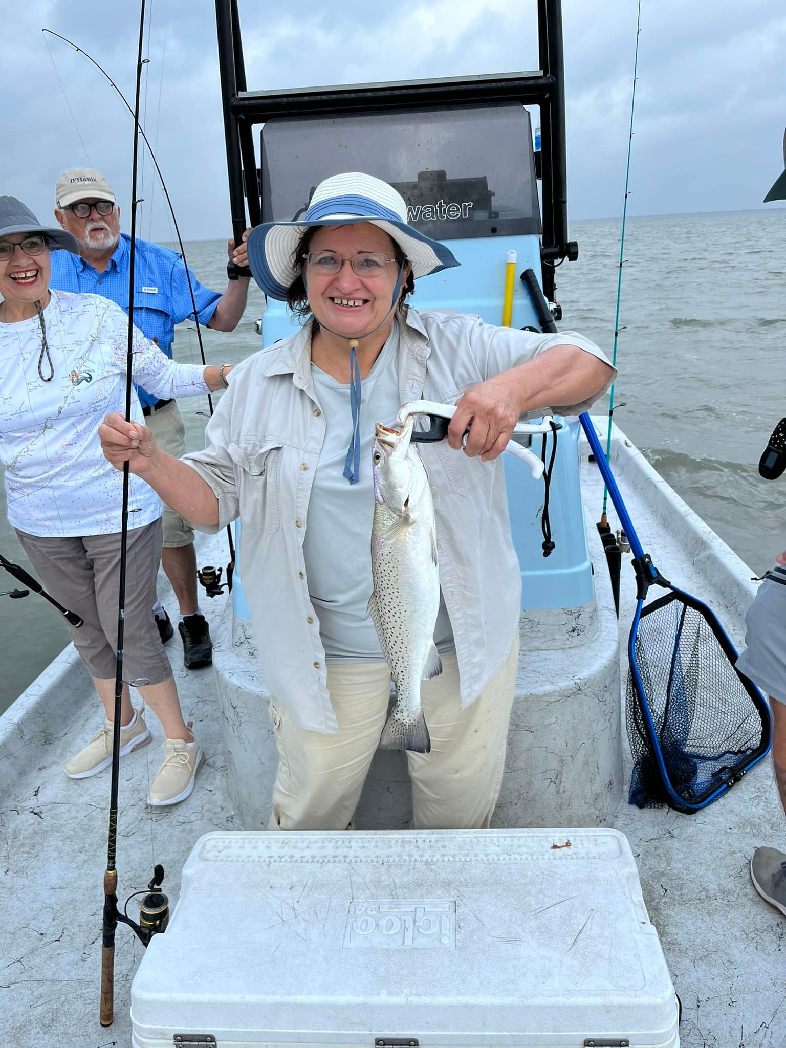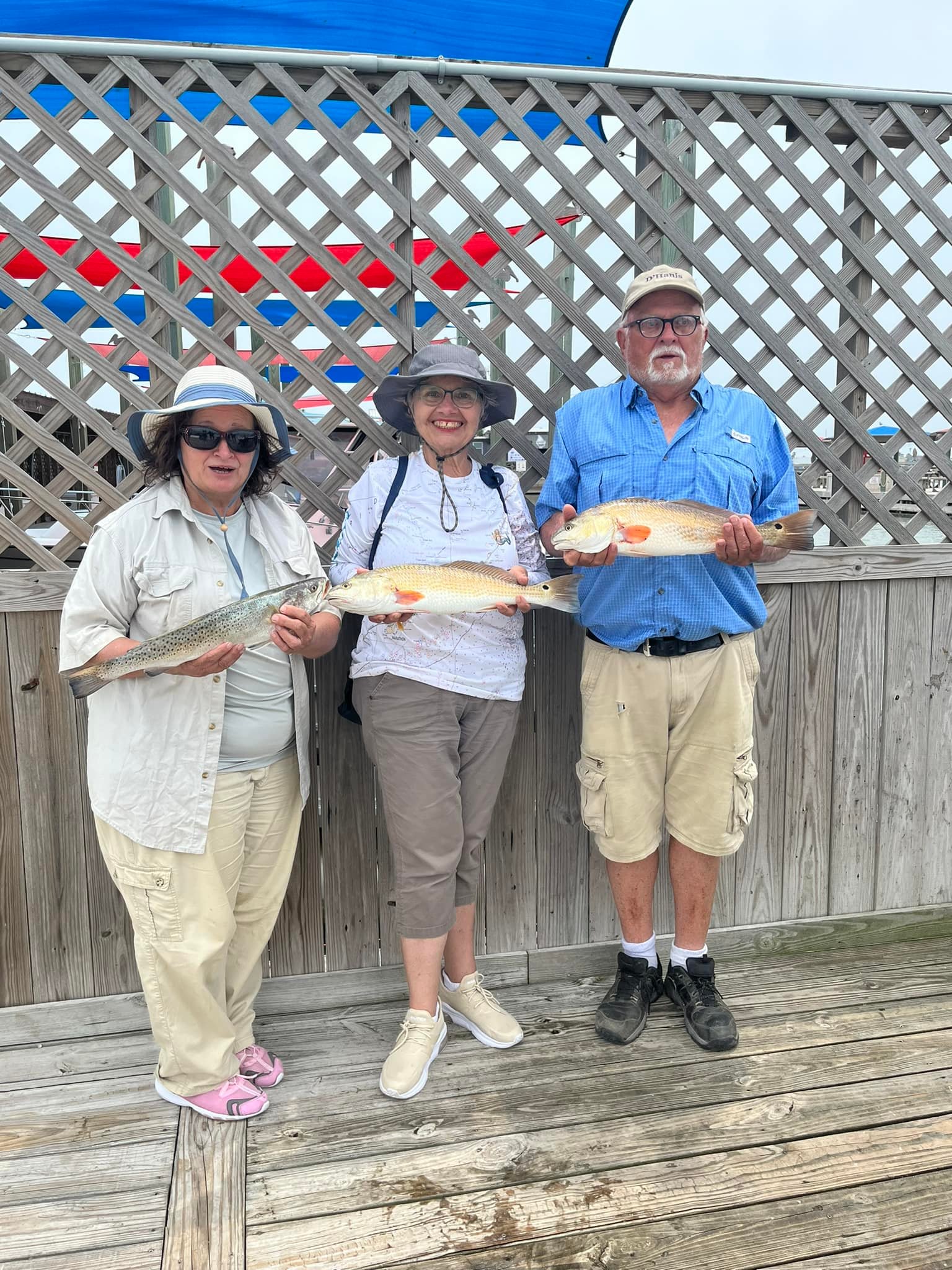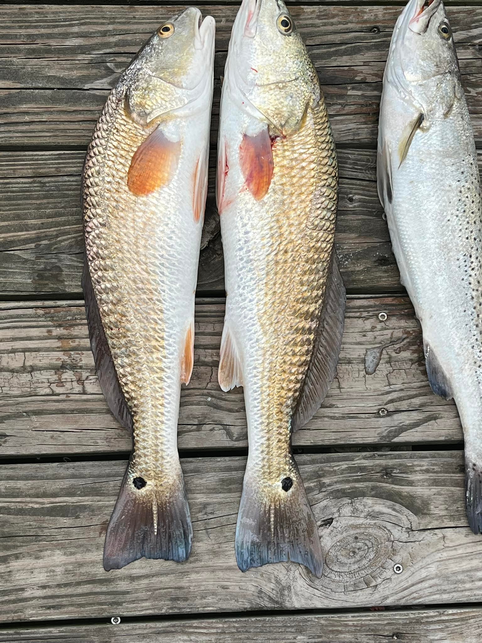 Speckled Trout: Also called spotted seatrout, these fish are prized for their sporty fight and tasty fillets. They're most active in the cooler months but can be caught year-round. Trout love to hang around grass beds, channels, and shell reefs. The average size is 15-20 inches, but trophy trout over 25 inches are possible, especially in winter and early spring.